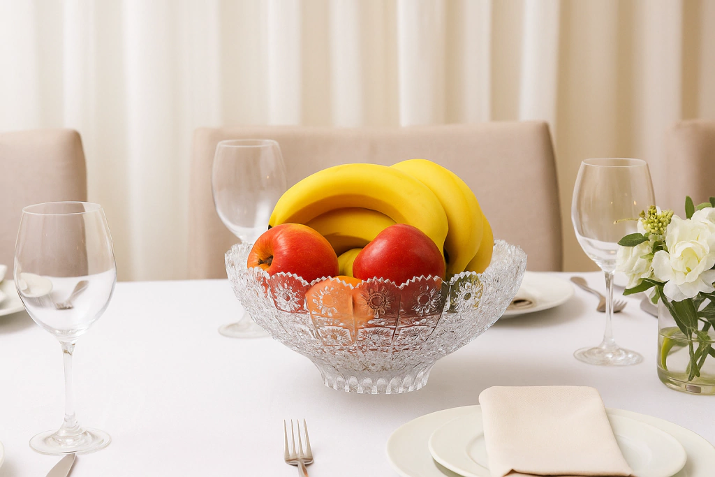 Encante sua casa com a elegância e a funcionalidade da Fruteira de Vidro Bohemia. Com design sofisticado e acabamento impecável, ela é ideal para decorar mesas e bancadas, ao mesmo tempo em que organiza e expõe frutas de forma prática e charmosa.