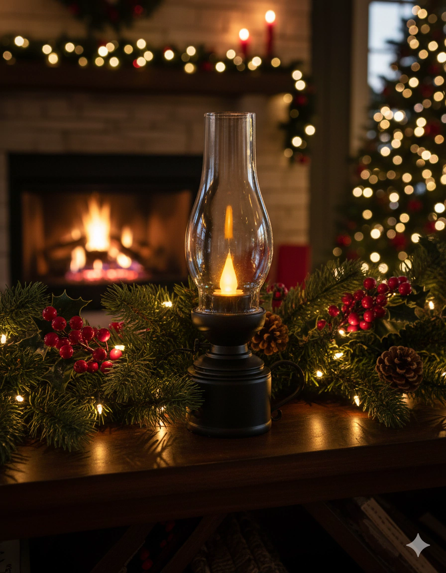 A lamparina retrô une o charme do passado à praticidade dos dias de hoje. Com acabamento em preto fosco e cúpula de vidro transparente, ela possui uma chama em LED que imita o brilho suave e acolhedor do fogo, trazendo aconchego sem abrir mão da segurança.