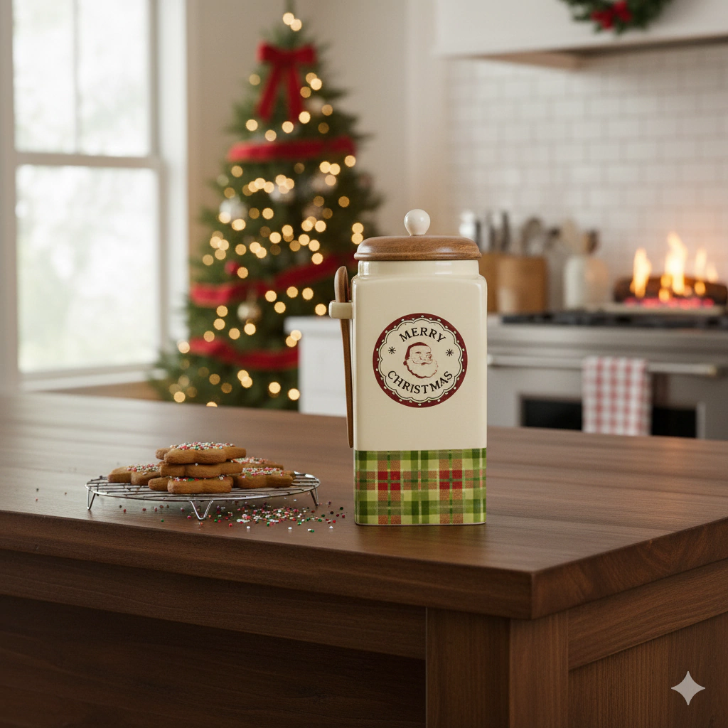 Com design delicado e acabamento em cerâmica, o Pote Decorativo Versailles é aquela peça que transforma qualquer cantinho da casa. Seu visual encantador com estampa natalina e tampa em madeira traz um toque acolhedor e elegante, perfeito para compor bandejas, aparadores ou prateleiras durante as festas.