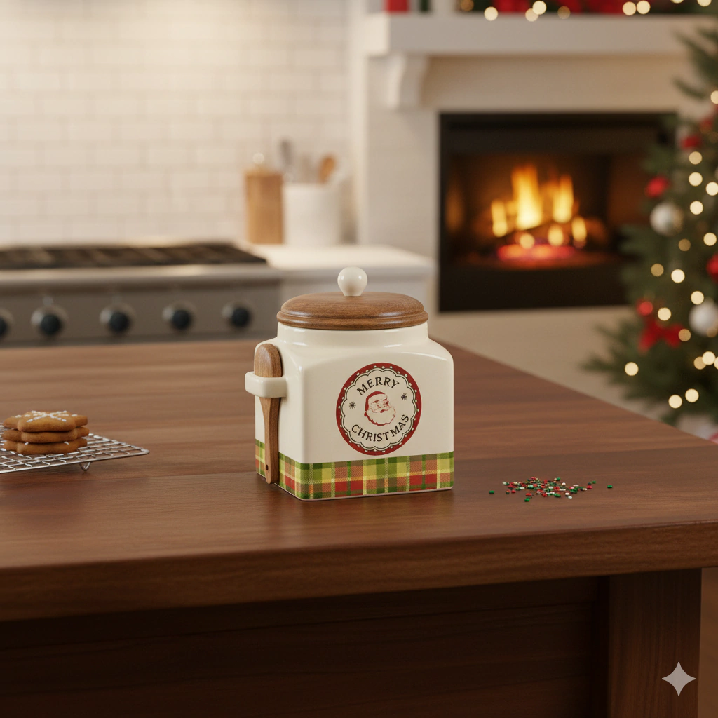 Com design delicado e acabamento em cerâmica, o Pote Decorativo Versailles é aquela peça que transforma qualquer cantinho da casa. Seu visual encantador com estampa natalina e tampa em madeira traz um toque acolhedor e elegante, perfeito para compor bandejas, aparadores ou prateleiras durante as festas.